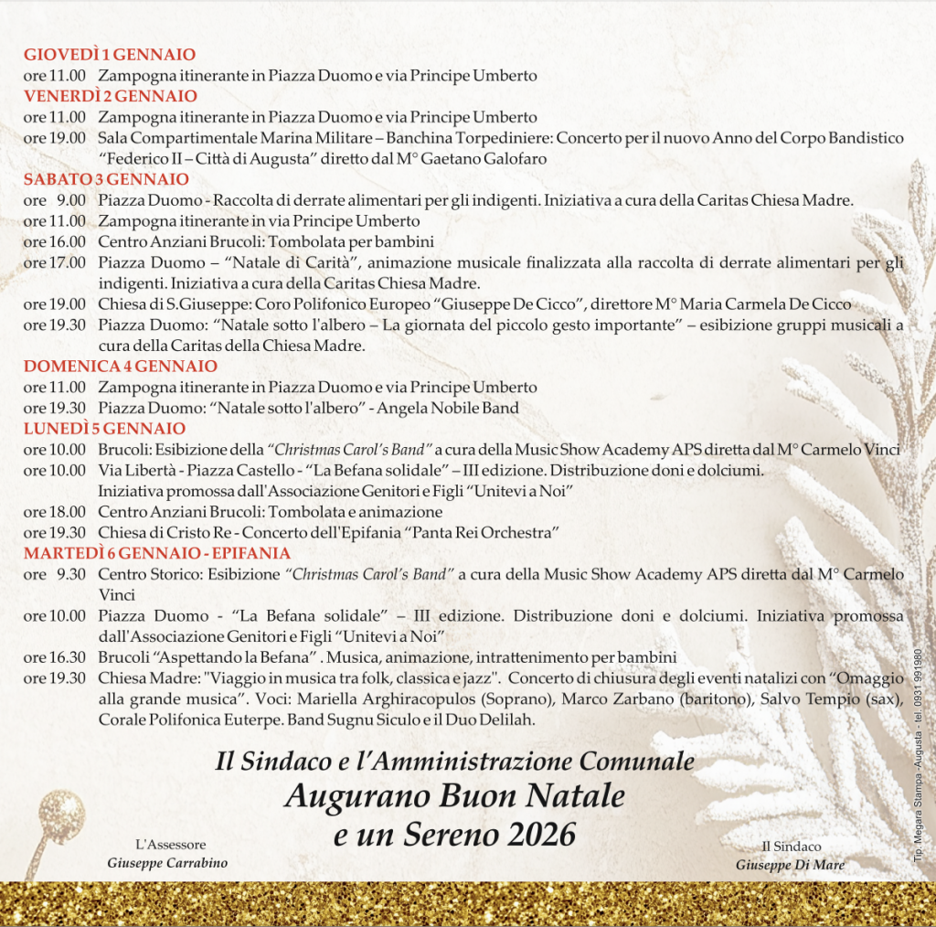 ore 11.00         Messaggio di Natale del Sindaco alla Città di Augusta
